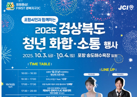 포항시는 경상북도 청년들의 화합과 소통을 위한 ‘경북 청년대축제’가 오는 3일부터 4일까지 양일간 포항 송도해수욕장에서 펼쳐진다고 전했다. 이번 행사는 경북지구청년회의소가 주최하고 북포항청년회의소가 주관하며, 해양도시의 특색을 살린 다채로운 무대와 체험 프로그램으로 청년과 시민 모두에게 즐거움을 선사할 예정이다. 올해는 ‘청년 화합과 소통’을 주제로, 청년의 열정과 시민의 참여가 어우러지는 프로그램이 준비됐다. 첫째 날인 3일에는 청년 토크콘서트와 다양한 공연이 이어지고, 둘째 날인 4일에는 청년 저출산 극복 캠페인, 유명 가수들의 무대, DJ PARTY가 열려 축제의 열기를 한층 끌어올릴 예정이다. 행사장에는 청년 월세 지원, 창업·취업 지원 정책 등을 안내하는 청년정책존이 운영되며, 청춘 버스킹 등 시민이 함께 참여할 수 있는 체험 프로그램도 마련된다. 또한 청년 창업자와 소상공인이 참여하는 플리마켓, 해변의 낭만적인 분위기를 살린 송도 포차도 함께 열려 축제의 즐거움을 더한다. 이번 축제는 경북 청년들이 서로의 꿈과 도전을 나누고, 지역사회와 소통하며 활력을 더하는 계기가 될 것으로 기대된다. 특히 야경이 아름다운 송도해수욕장에서 펼쳐지는 만큼, 청년뿐 아니라 시민 모두에게 잊지 못할 가을의 추억을 선사할 전망이다.…